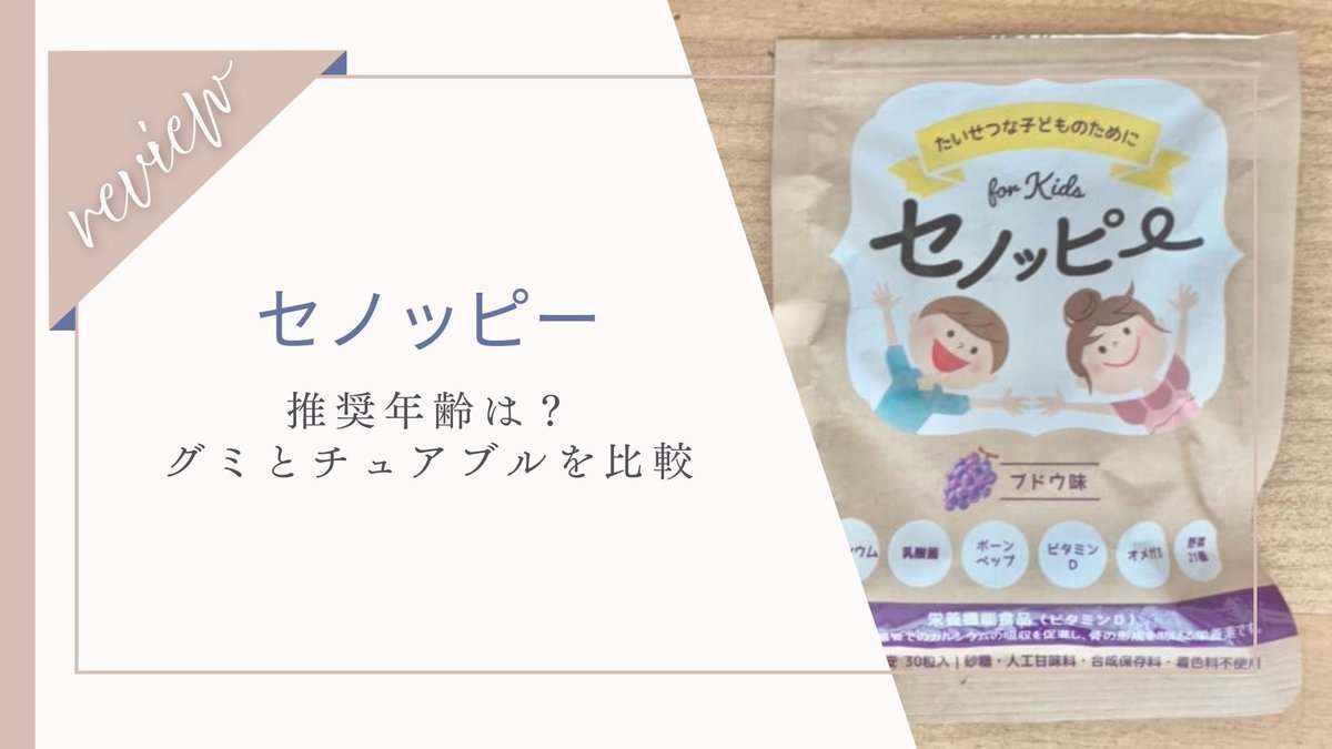 6歳以上に推奨していますが、6歳以下も保護者の目があればOK。栄養機能食品なので何歳までという上限はありません。大人も飲んでいる声が公式サイトにありました。我が家もセノッピーグミを子ども達に食べさせています。『グミちょうだい』と催促されるほどお気に入り!この記事では、セノッピーグミとチュアブルの違いや、リアルな口コミ、安く購入する方法などをまとめています。購入を検討されている方、成長サポートグミが気になっている方はぜひ参考にしてください。セノッピーシリーズを上手く取り入れれば、幼児から高校生までの成長を手軽にサポートできますよ。
