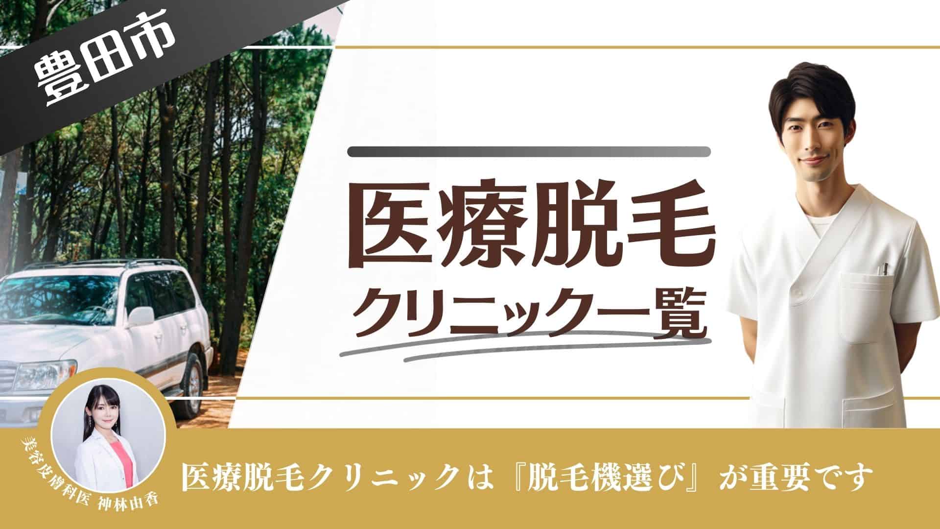 豊田市で永久脱毛できるおすすめ評判のメンズ医療脱毛(レーザー脱毛)クリニックや美容皮膚科、使用されている脱毛機情報をご紹介します。全身脱毛、VIO、ヒゲ、足の部位毎に安いクリニックや都度払い、キャンペーンを比較できます。